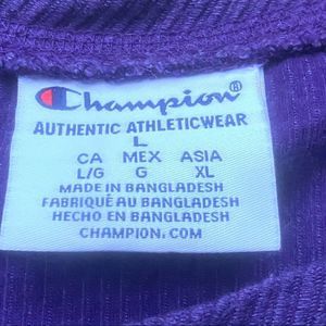 Champion East Carolina Pirates ECU collegiate purple ribbed long sleeve sweatshirt. Material is a unique thin corduroy feel.
