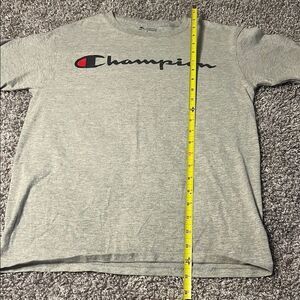 Champion gray t-shirt with logo design. Comfortable and stylish.