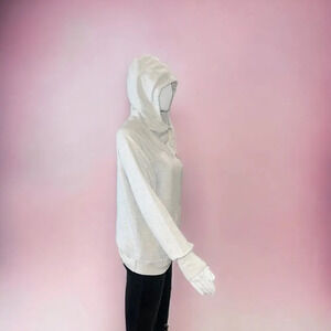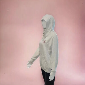 Heather oatmeal grey sweatshirt with rose gold logo.