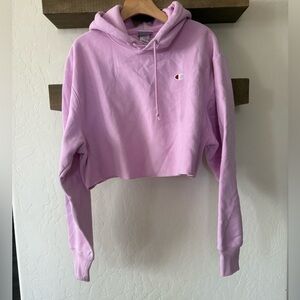 Champion|Light Pink cropped hoodie sweater,small logo•••Size LARGE, athleisure
