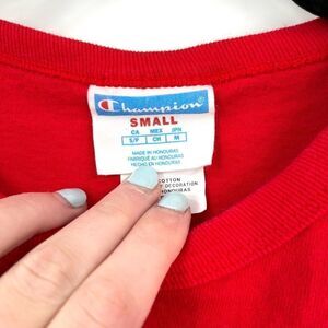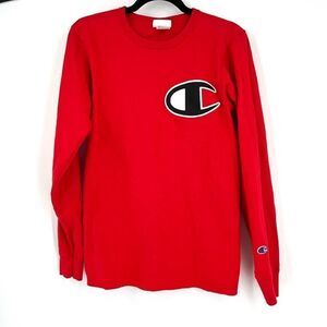 Champion Men’s Big C Logo Red long sleeve Heavy Shirt small 100% cotton unisex