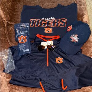 Classic navy blue crewneck sweater by Champion. Features bold logo design. Comfortable and stylish. NWT shades& Adult poncho included as well as pullover