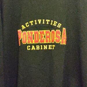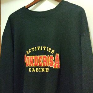 Black Ponderosa Activities Cabinet crewneck sweatshirt. Embroidered spell out on front. In very good condition, no major flaws. See photos for details.W 26" L 28"