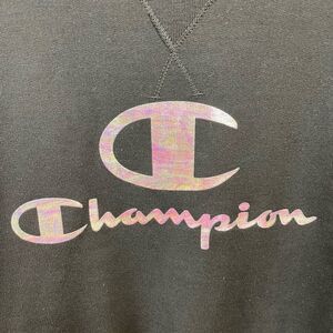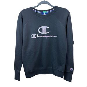 Champion Sweatshirt in Black with Silver/Pink Holographic Logo, size S - NWT