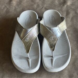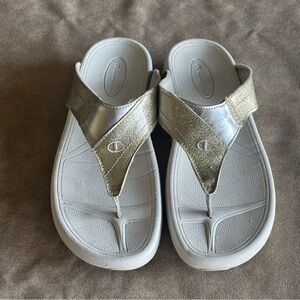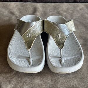 Champion's Women's White & Gold Thong Sandals Sz 9 in great condition