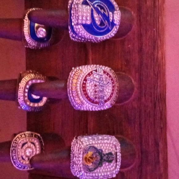 20 championship rings selling for 30 a piece if u buy 3 only 25 a piece more than 3 I'll do 20 a piece I have super bowl rings Stanley cup world series and NBA finals rings inquire about teams and sizes
