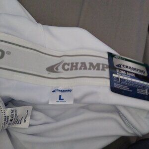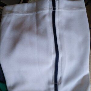 NWT Size Large Men's Baseball pant , white with navy piping. Adjustable Velcro hem, Champo brand, 100 % polyester