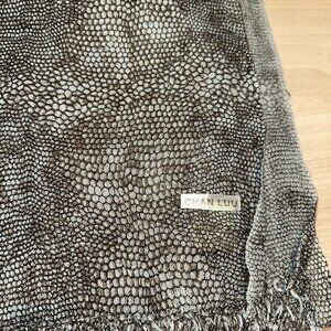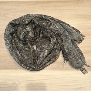 Chan Luu Animal Print Black Grey Fringe Scarf Cashmere Silk