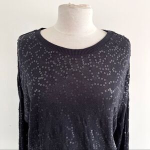 Chan Luu Black Sequin Long Sleeve Sweater Small