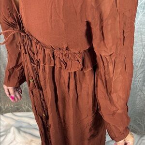Chan Luu Bohemian Brown Smocked Waist Tie Front Maxi Dress Size Large