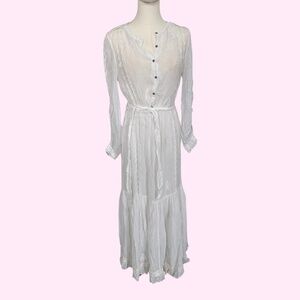 Chan Luu Designer Boho Chic Lace Flowy White Tiered Prairie Maxi Dress Size Small