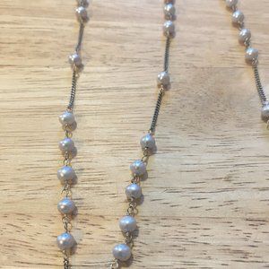 34” necklace with 3.5” baroque pearl pendant. Freshwater grey pearl and sterling silver chain.