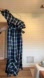 Stylish one-shoulder design, featuring a bold checkered plaid pattern in navy and white. Ruffle overlay on neckline and hem. Tie waist. Zipper enclosure. Perfect wedding guest dress or holiday dress! Great condition, no flaws. Fits a little big in the chest/armpit area. I used a safety pin to cinch it in when I wore it!