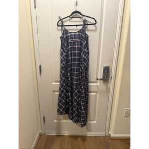Chan Luu Plaid Maxi Dress Navy Blue Check Tie Strap Boho Summer Casual one size