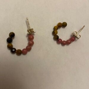 Chan Luu Small Hoops Tiger Eye & Rose Quartz 1/2"