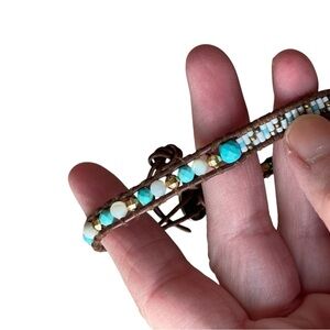 Chan Luu Turquoise Seed Beaded Bracelet 925 Leather