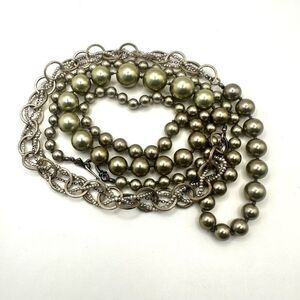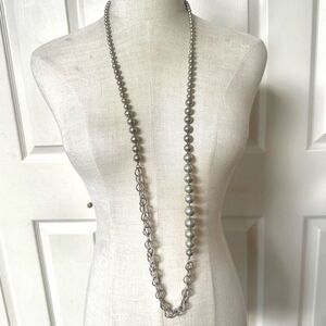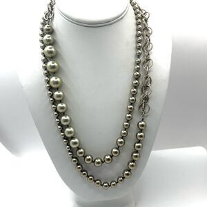 Chan Luu sterling silver and pearl link chain asymetrical necklace