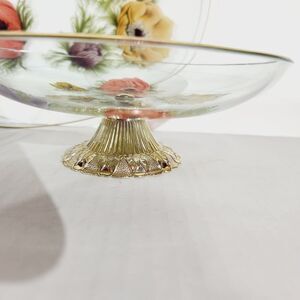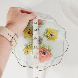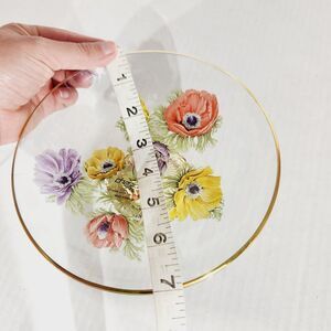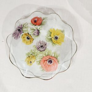 Chance Glass England Lot of 3 Anemone Floral Painted Serving Plate Pedestal Vtg