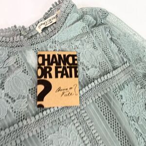 Chance Or Fate Blouse Womens Medium Green Floral Lace Mock Neck Long Sleeve NEW