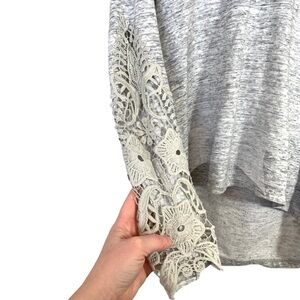 Chance or Fate Crochet Sleeve Gray Long Sleeve Hooded Shirt Size Medium