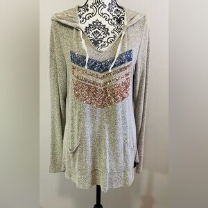 Chance or Fate Gray Sequin Chevron Hoodie Sz-Large