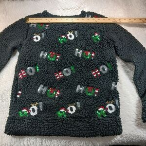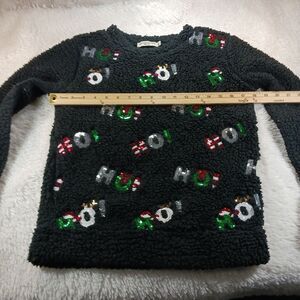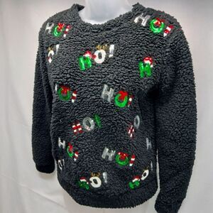 Chance or Fate HOHOHO Ugly CHRISTMAS Sweater Sherpa Fleece Black Embellished XS