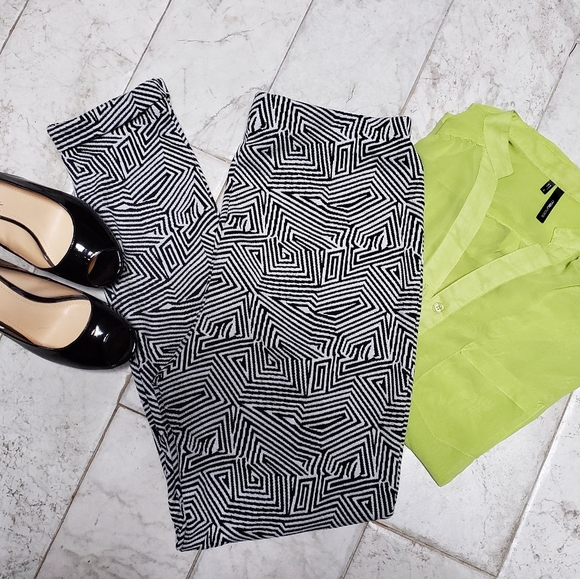 Women's pants that spotlight a secure elastic waistline. These enticing pants from Chances R are finished with a patterned-color scheme and a comfortable polyester- and spandex-blend construction.