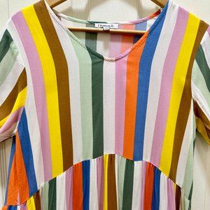Beautiful, colorful dress. Happy clothes that lift the spirit. ๐Ÿคฉ ๐ŸŒธ Excellent pre-owned condition ๐ŸŒธ Brand ~ Chances R Style ~ Slip on. Size ~ Medium. Collar ~ V neck. Sleeve ~ Short Sleeves. Pockets ~ NO pockets. Closure ~ Pull on. Color ~ Multicolored striped Yellow, Orange, White, Green, Blue And Lavender. Material ~ 100% Rayon. Care ~ Hand wash cold. Made in ~ India. Measurements laying flat: Pit to Pit ~ 19" Length ~ 34" Summer dress, Easter, Spring, Fun dress, colorful dress, boho beach, cruise, vacation, travel, gipsy, hippie, festival, cocktail party, garden wedding, grandma prairie, costal. ๐Ÿ’œ#0248