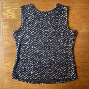 Brown and gold geometric shell or tank top from Chances R. Size large, excellent used condition with only some minor wear. Please see photos for condition and measurements.