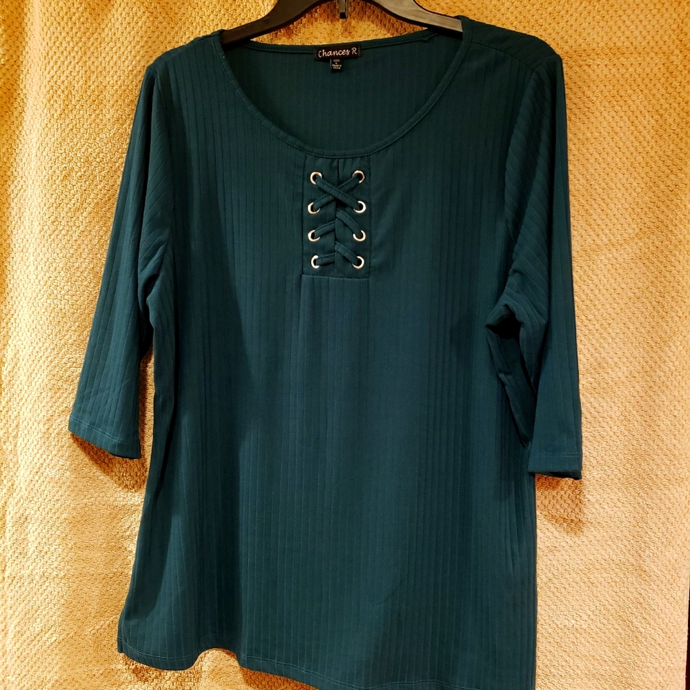NWOT Green 3/4 Sleeve Strong Cross Front