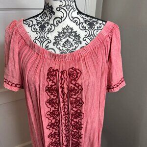 Chances R pink boho embroidered off shoulder mini dress casual size L