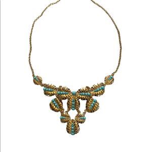 Chandelier Boho Aztec Turquoise Faux Stone Gold Tone Necklace