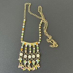 Elegant and versatile, this necklace features a gold-tone chain and a chandelier of multi-color gemstones, offering a sophisticated touch to any ensemble.