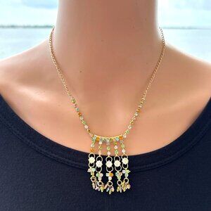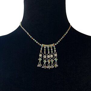 Chandelier Choker Necklace Crystal Fringe Gold Tone Chain