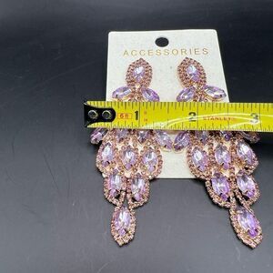 Chandelier Dangle Rhinestone Earrings Luxury Design Faceted Purple Gold Tone