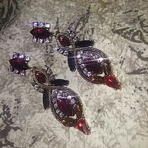Chandelier Earrings Red Orange Crystal Rhinestone Vintage Glam Statement Pierced