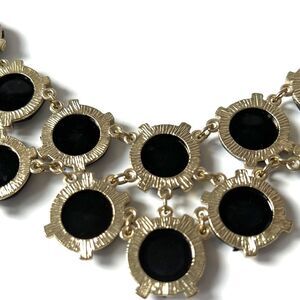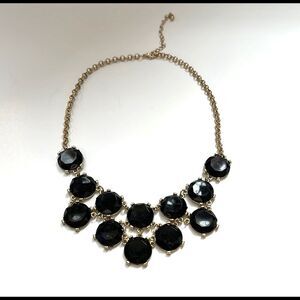 Chandelier Statement Necklace Gold Tone with Black Stones.
