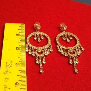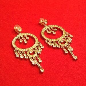 Chandelier Rhinestone Dangling multiple level Circles Pierced Earrings