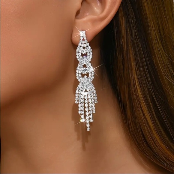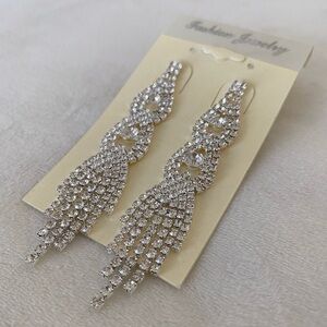 Chandelier clear crystal rhinestone silver earrings wedding bridal New