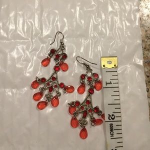 Costume chandelier earrings with tangerine colored gems