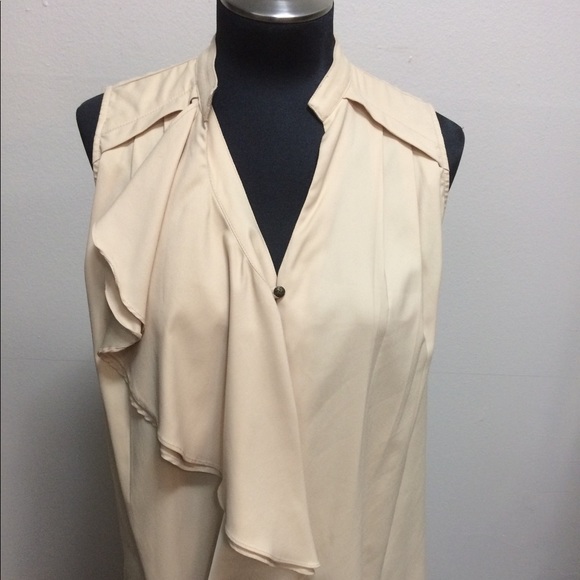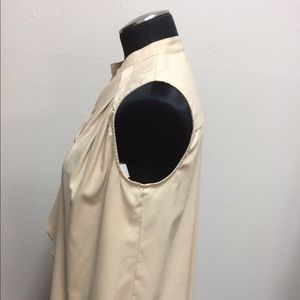 Comfortable soft cream color top. Asymmetric fabric design in the front. Button down front with small hidden gold buttons