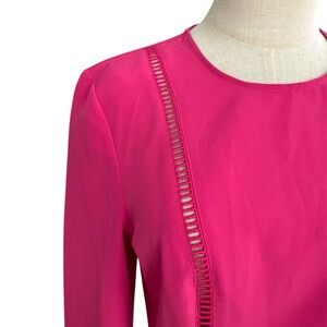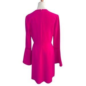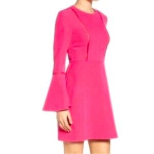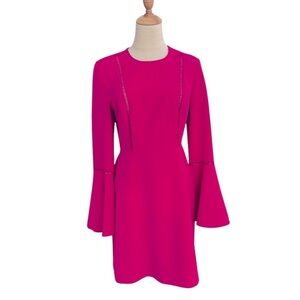 Chandler Henry Pink Posie Bell Sleeve Dress Size Medium New With Tags. Never been worn but does have a loose threads and small opening in the back of the dress below the zipper, see pics. This hot pink dress is so cute and flattering on. It has pullover styling with a hidden back zipper with hook and eye closure. It has bell sleeves with ladder lace inserts on the front and a fitted waist. Measurements lying flat are approximately 16” inches underarm to underarm and from shoulder to hem approximately 34” inches. Perfect for Valentine’s Day 💖