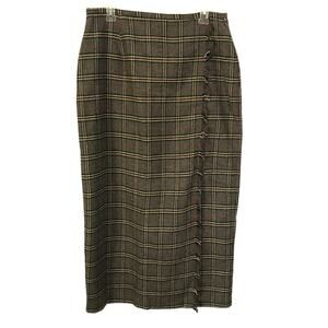 Chandler Hill Skirt Size 12 Womens Wool Blend Plaid Dark Gray Long Blanket Edge