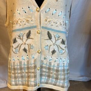 Chandler Hill Vintage Sweater Vest Size L Floral Design Knitted in Pearl Buttons