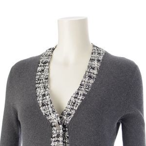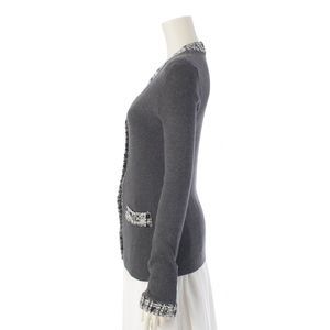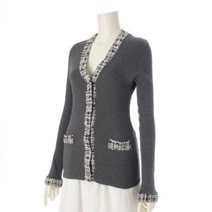 Chanel 04P Cotton Coco Mark Tweed Knit Cardigan Top P23598 Gray 40
