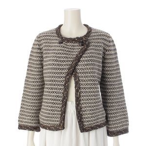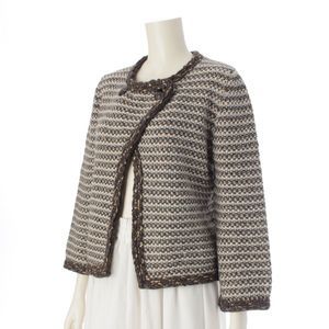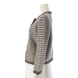 Chanel 07A Cashmere Wool Tweed Knit Collarless Jacket Cardigan P31827 Brown 40
