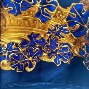 Chanel 100% Silk Blue and Gold Floral Scarf