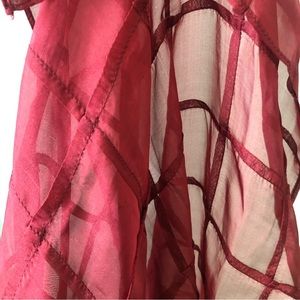 Chanel 100% silk sheer long maroon red scarf grid pattern cc logo chic classy