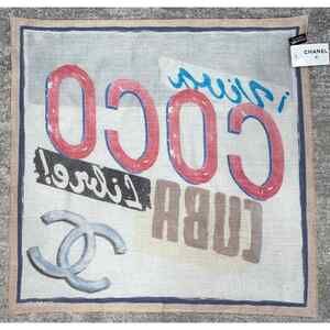 Chanel 17C Coco Cuba CC Beige Graffiti Cotton Bandana Handkerchief Scarf Wrap