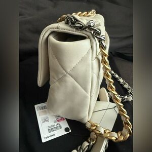 The Chanel 19 Beige Bag is a stylish and luxurious shoulder bag designed for women. Made from high-quality lambskin exterior material in a chic beige color, this bag exudes elegance and sophistication. With the iconic Chanel brand and model name, it is a coveted accessory that combines fashion and functionality seamlessly. Perfect for carrying essentials while making a bold fashion statement, this Chanel bag is a must-have for any fashion-forward individual.